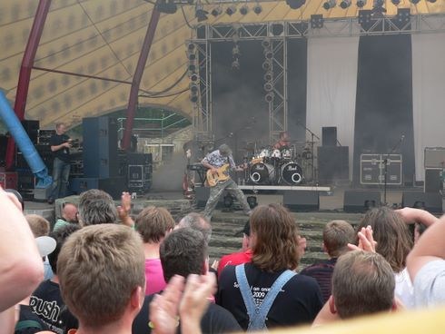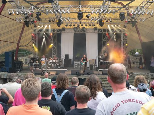 Zitat: “Vom 10. bis 11.07.2009 fand das vierte Night Of The Prog-Festival auf Deutschlands schönster Freilichtbühne, der Loreley bei St. Goarshausen statt. Während in der Woche vor dem Festival und am Morgen des 10. Juli noch heftige Regenfälle über Deutschland hinwegzogen, hatte Petrus ein Einsehen mit den Freunden des Progrocks und ließ die Schleusen während des gesamten Festivals geschlossen..”