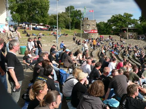 Zitat: “Vom 10. bis 11.07.2009 fand das vierte Night Of The Prog-Festival auf Deutschlands schönster Freilichtbühne, der Loreley bei St. Goarshausen statt. Während in der Woche vor dem Festival und am Morgen des 10. Juli noch heftige Regenfälle über Deutschland hinwegzogen, hatte Petrus ein Einsehen mit den Freunden des Progrocks und ließ die Schleusen während des gesamten Festivals geschlossen..”
